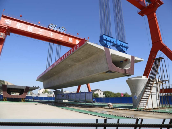 陜西榆林豫中架橋機(jī)廠家拼裝程序?yàn)橐韵聨c(diǎn):測量定位→平衡對稱拼裝兩側(cè)主桁梁→安裝前后聯(lián)系框架、臨時(shí)支撐→安裝前、中、后支腿及中、后頂高支腿→鋪設(shè)縱向軌道→安裝起吊小車、液壓系統(tǒng)、操作臺(tái)、接通電源→檢查調(diào)試初步運(yùn)行。架橋機(jī)安裝完成以后應(yīng)檢查各部尺寸是否正確,各系統(tǒng)的運(yùn)行是否正常,然后試運(yùn)行,用自行式電動(dòng)平車運(yùn)梁,龍門吊將箱梁吊至電動(dòng)平車上,再由電動(dòng)平車將梁運(yùn)至架橋機(jī)后跨內(nèi),兩起吊小車將梁吊起。